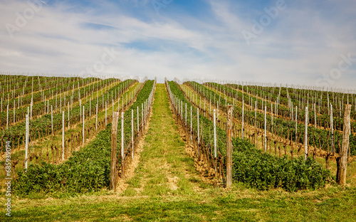 Obraz premium Smooth rows of vineyards in Tuscany in spring.