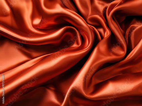 © darion, Obraz premium Smooth, rust-colored satin fabric with soft folds and wrinkles.