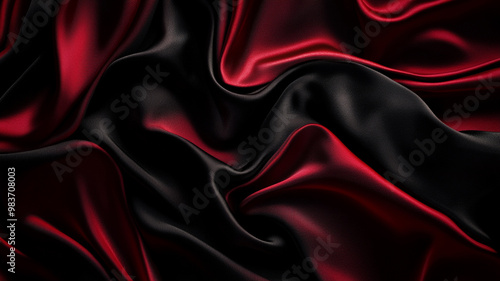 © Sajib, Fototapeta premium Smooth silk fabric in rich red and deep black flowing elegantly under soft light