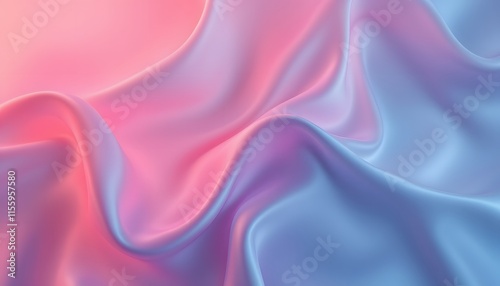© Dmitry, Obraz premium Smooth silky fabric waves in pink and blue colors creating soft flowing gradient pattern. Abstract textile background with gentle folds. Luxurious satin material with copy space