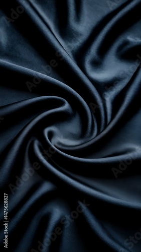 Fototapeta premium Smooth, soft, shiny black silk satin fabric with a rippled texture creates an elegant and luxurious backdrop
