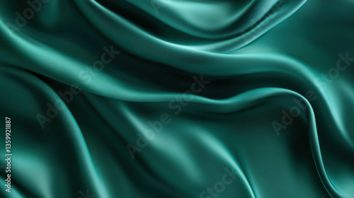 Obraz premium Smooth teal fabric with elegant folds and soft texture, creating luxurious...