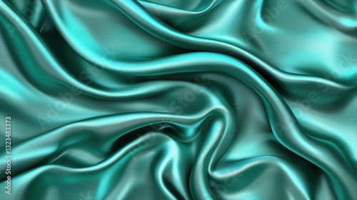 © Thuntaree, Obraz premium Smooth Teal Satin Fabric Texture for Elegant Background Designs