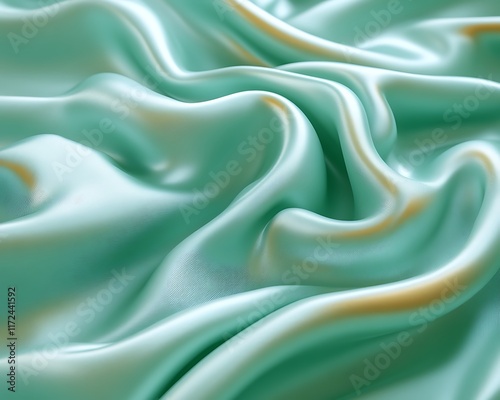 © Rati, Obraz premium Smooth, teal silk fabric with soft folds and elegant draping.