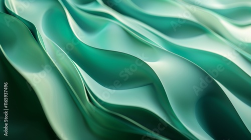 Obraz premium Smooth, undulating waves in an emerald green hue create a mesmerizing visual...