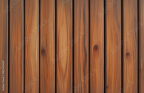 Fototapeta premium Smooth vertical brown wooden planks with natural wood grain and knots forming...