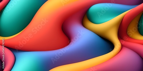 © G-IMAGES, Obraz premium Smooth wave flowing rainbow gradient background 3D, liquid abstract wallpaper design.