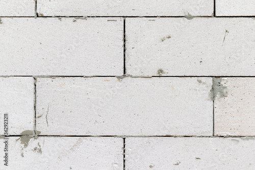 Fototapeta premium Smooth white brick wall with traces of cement background texture