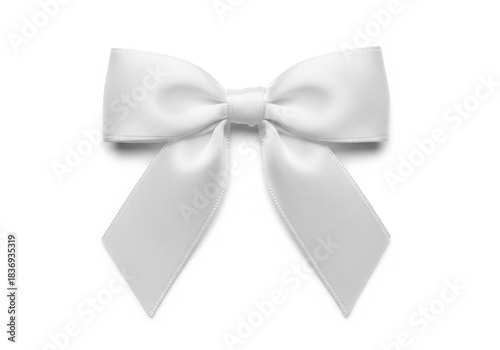 Naklejka premium Smooth white satin ribbon tied into a symmetrical bow centered on a plain...
