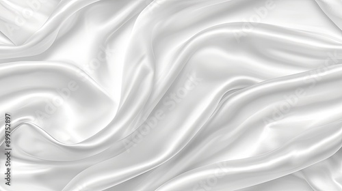 Fototapeta premium Smooth white silk cascades softly, creating gentle waves and reflections in a...