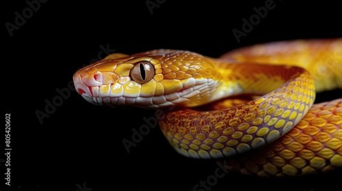© Daniil, Fototapeta premium Snake closeup on black background