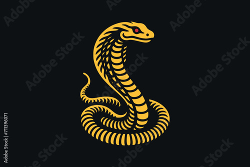 Fototapeta premium Snake Cobra. Beautiful engraving illustration, icon, logo. simple design, isolated object. Yellow on black. Red eye