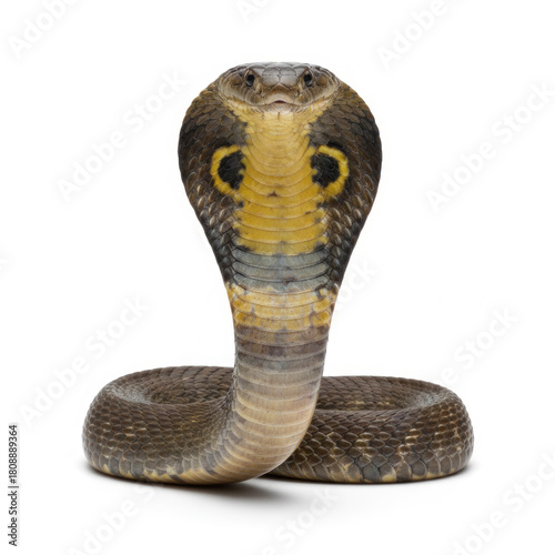 © Halim Karya Art, Fototapeta premium Snake (Cobra) full body hood expanded striking pose isolated white background