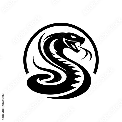 © JimzStd, Naklejka premium Snake cobra viper silhouette. engrave black icon on white background