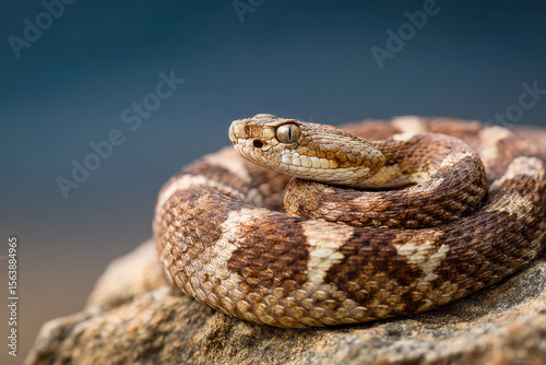 Obraz premium Snake Coiled on Rock in Natural Sunlight