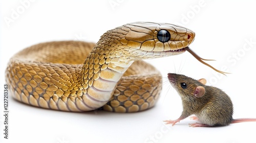 Fototapeta premium Snake hunting mouse, studio, white background, wildlife