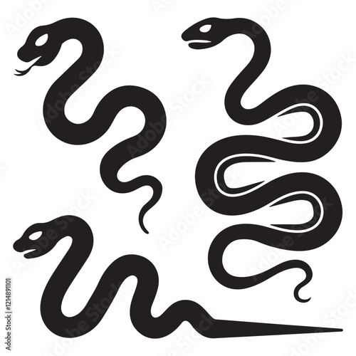 Naklejka premium snake icon, snake vector silhouette, curved snake animal design illustration,...