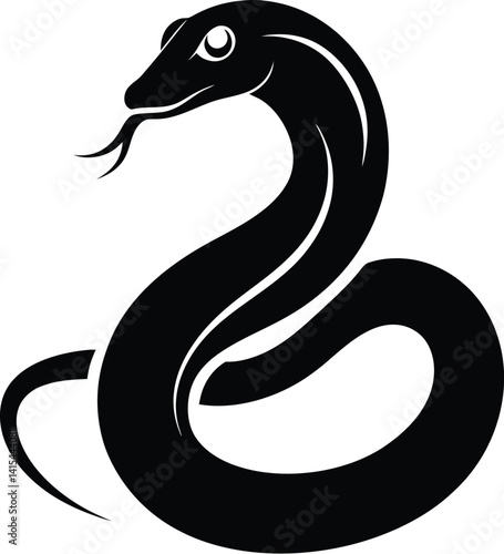 © VectorEliteX, Naklejka premium snake icon, snake vector silhouette, Curved snake animal design, vector illustration
