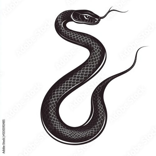 © SendStockAI, Obraz premium Snake illustration showing a reptile with its tongue out on a white background