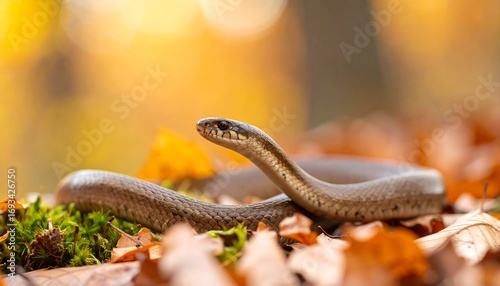 © proliman, Fototapeta premium Snake in autumn leaves (2)