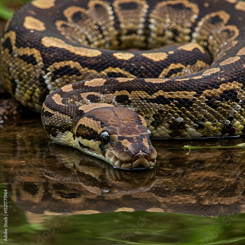 © OmRioRio, Obraz premium Snake in Water Reflection
