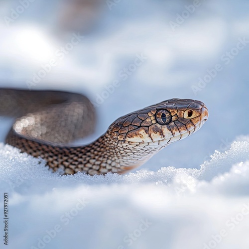 © 2haq, Obraz premium Snake isolated on winter background