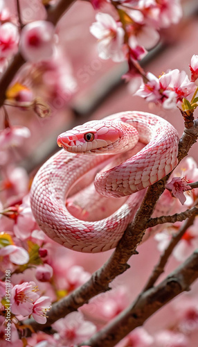 © Ethan, Fototapeta premium Snake on a branch of blossoming sakura