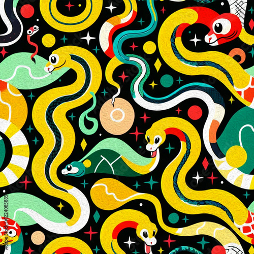© Wioletta, Fototapeta premium Snake . Pattern with oil paint for printing on wall decorations, wallpapers, covers
