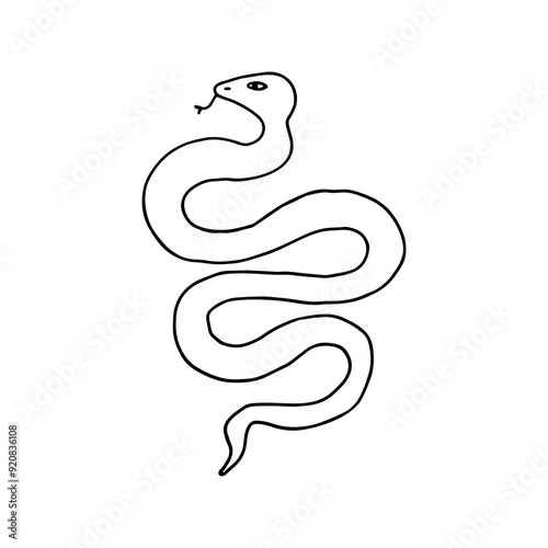 © Aleksandra, Naklejka premium Snake, poisonous, scaly. Reptile. Doodle. Vector illustration. Hand drawn. Outline.