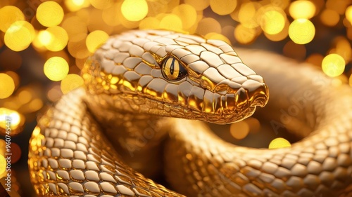 © ANNetz_PK, Obraz premium Snake sculpture surrounded by New Years lights, 2025, festive ambiance