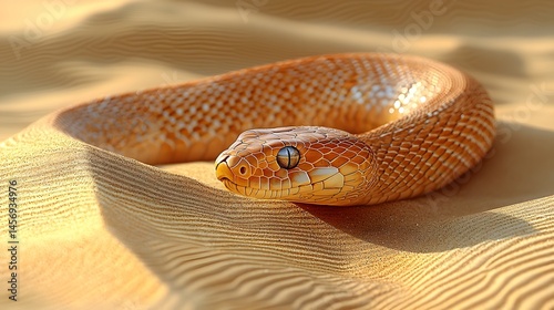 © Thares2020, Fototapeta premium Snake slithering through dry rippled sand dunes