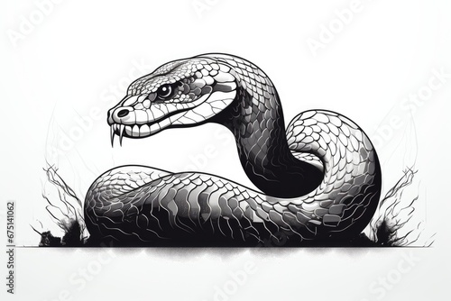 © kardaska, Obraz premium Snake tattoo over a white background. Generative AI