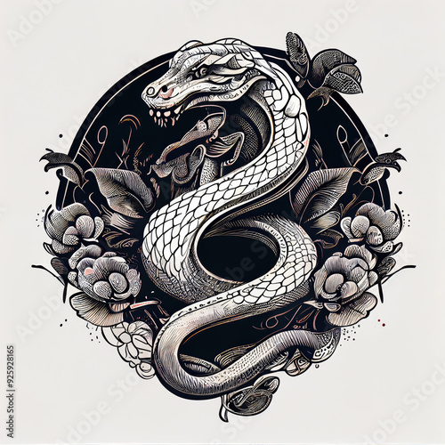 Obraz premium Snake Vintage T-Shirt B&W Design – Bold Black and White Vector Graphics...