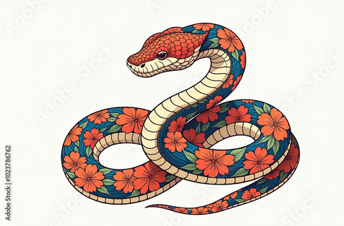 Obraz premium snake with flower composition on white background. Chinese New year of the snake 2025