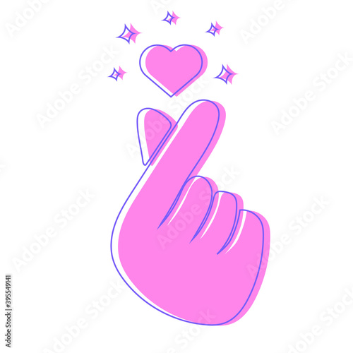 Obraz premium Snapping fingers hand with Sparkles. Korean symbol hand heart