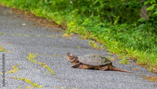 © Jennifer, Fototapeta premium Snapping turtle on a paved trail