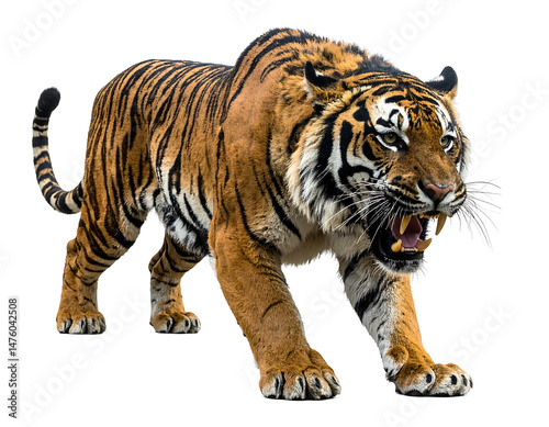 © Okla, Fototapeta premium Snarling Orange Tiger on Transparent Background