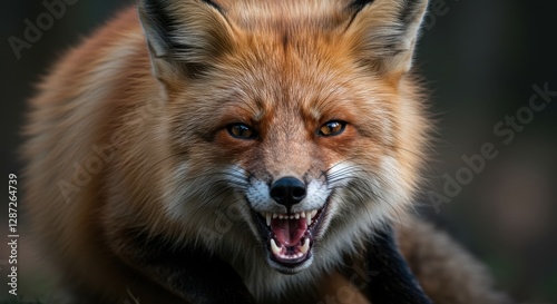 © umamidae, Fototapeta premium Snarling Red Fox Close-up Displaying Teeth Aggressively in Natural Habitat