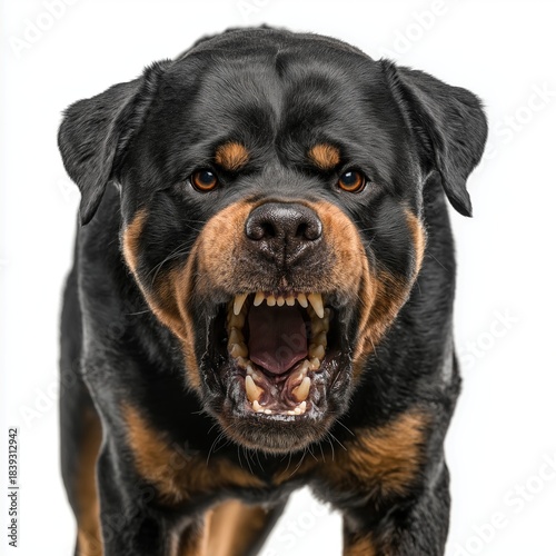 © vlntn, Fototapeta premium Snarling Rottweiler Aggressive Studio Close-Up Portrait