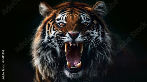 Obraz premium Snarling tiger illustration on a dark background