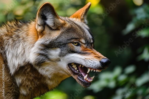 Obraz premium Snarling Wolf in Wildlife: Fierce Predator in Nature, Canine Hunter