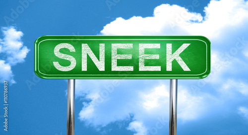 Obraz premium Sneek vintage green road sign with highlights