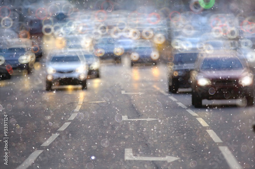 © kichigin19, Obraz premium śnieg w tle miasta Expressway