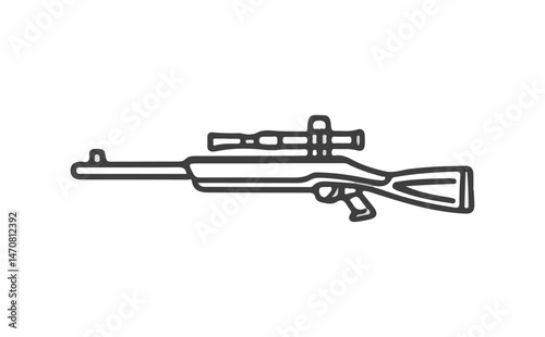 © EngineerJahid, Naklejka premium Sniper Rifle Gun Outline with Scope Isolated on Transparent Background Design