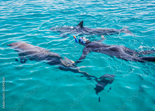 © oldmn, Obraz premium Snorkeilng with doplhins