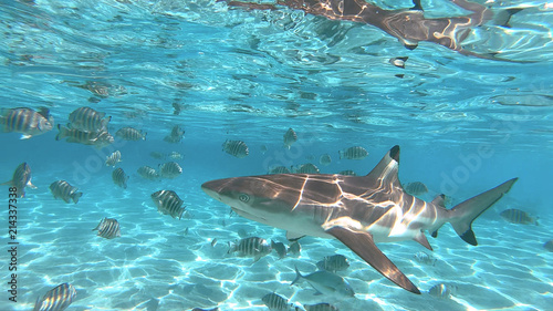 Obraz premium snorkeling in a lagoon with sharks, French Polynesia