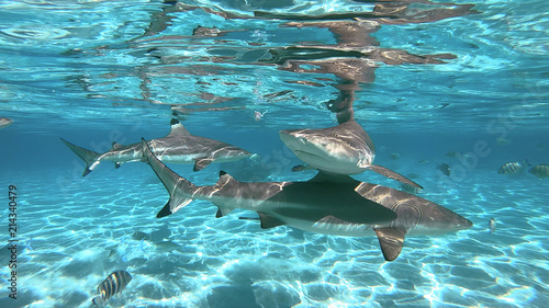Fototapeta premium snorkeling in a lagoon with sharks, French Polynesia