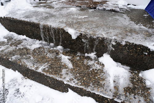 Obraz premium snow and ice on stairs in winter