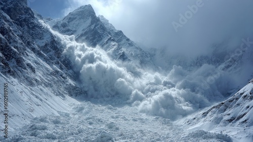 © banimakrufah, Fototapeta premium Snow avalanche cascading down mountain