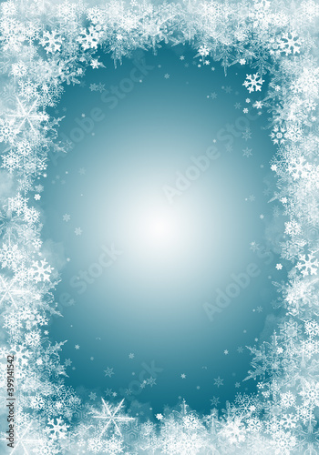 Fototapeta premium Snow background. Blue and white Christmas snowfall with defocused flakes....